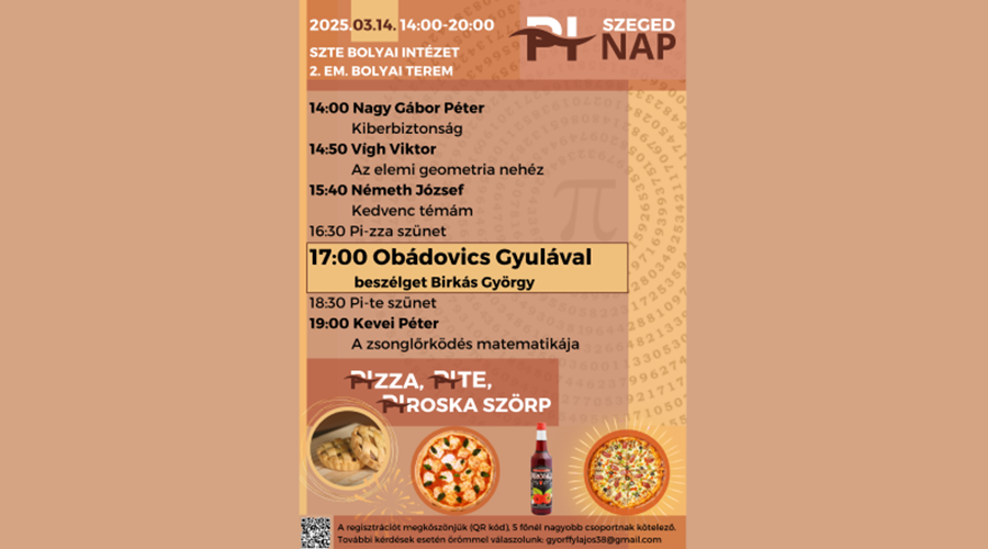 A matematika világnapjának megünneplésére a Szegedi Tudományegyetem Bolyai Inté­ze­té­nek legnagyobb termében került sor, ahol csak pótszékek és állóhelyek segítségével fért be a 150 fős közönség. A szegedi egyetemi tanárok, kutatók mellett idén egy „országos legendát” is sikerült elcsábítanunk, a 98 éves Obádovics Gyulát. Neve főleg a generációk által használt, 1956-ban írt könyvéről híres, pedig amellett, hogy most is kutat, ír és olvas komoly matematikát, sőt verseskötete, regényei jelentek meg – tudósít Győrffy Lajos.