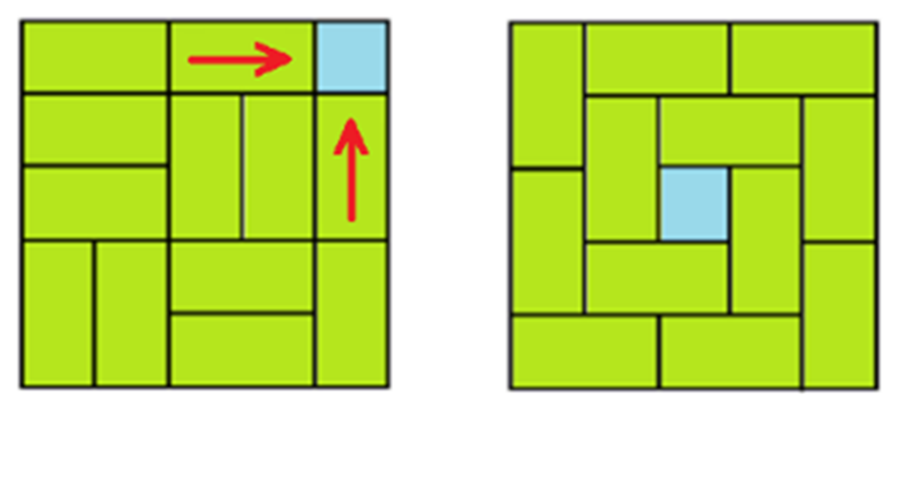 A sakktábla mind a négy sarkába nem kerülhet bástya. Ugyanis a sarkokat csak 0, 1 vagy 2 bástya ütheti, és ha már három sarokban van bástya, akkor a negyedik sarkot már két bástya üti. És tudunk olyan megoldást adni, ami csak azt a sarkot nem tölti ki, minden mást igen. Könnyen ellenőrizhető, hogy az alábbi példában a megadott szabályok szerint raktuk le a bástyákat; itt a számok azt jelzik, hogy az adott mezőbe hányadik lépésben rakunk le bástyát: