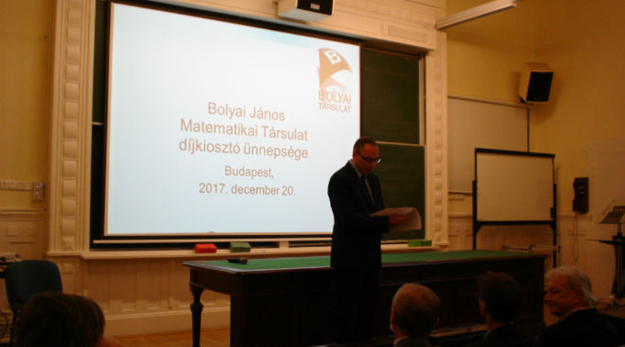 A Bolyai János Matematikai Társulat 2017. évi díjainak átadására (Szele Tibor Emlékérem, Grünwald Géza Emlékérem, Farkas Gyula Emlékdíj, Rényi Kató Emlékdíj, Patai-díj), valamint a Kürschák József Matematikai Tanulóverseny és a Schweitzer Miklós Matematikai Em­lék­ver­seny eredményhirdetésére december 20-án került sor Budapesten, az MTA Rényi Alfréd Matematikai Kutatóintézet nagy­ter­mé­ben.