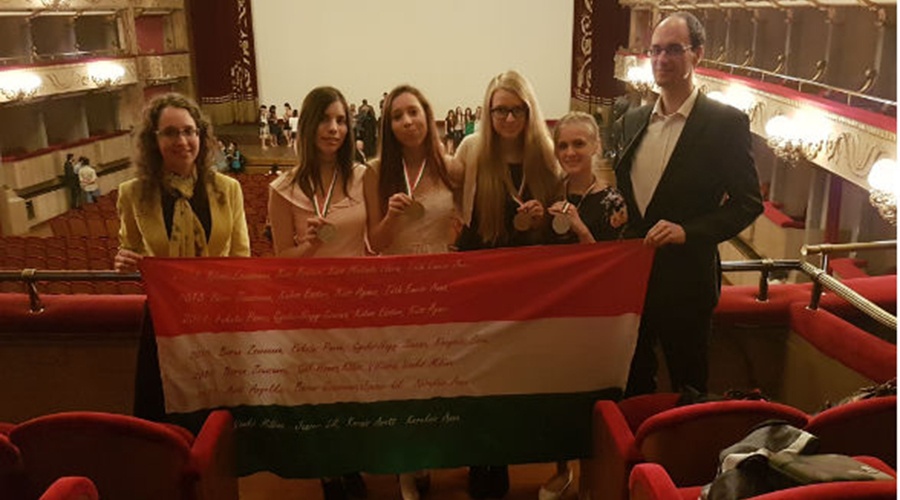 Közös cikkben adunk hírt az Arany Dániel Matematikai Tanulóverseny májusi díjkiosztójáról és az Európai Lány Diákolimpia áprilisi ered­mé­nye­i­ről, a lányok élményeiről. Képünkön a csapat a firenzei színházban: Fekete Panna csapatvezető-helyettes, Kerekes Anna, Kocsis Anett, Vankó Miléna, Janzer Orsolya Lili és a csapatvezető Nagy Zoltán Lóránt. Ezúton is gratulálunk a szép sikerekhez!