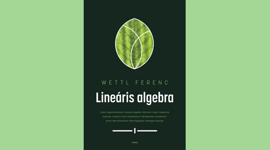 Az egyszerű, de elegáns sötétzöld címlap egy nagy méretű és vaskos kötetet takar, ami több mint ötszáz sűrűn szedett oldalon minél természetesebb módon bevezetve, gondosan felépítve tartalmazza a lineáris algebra témáit az alapoktól kezdve egé­szen a határterületekig. Wettl Ferenc Lineáris algebrájának moduláris felépítése lehetővé teszi, hogy különböző, mérnöki, közgazdasági vagy természet­tu­do­má­nyos képzések akár alap-, akár mesterfokú kurzusain tankönyvként és kiegészítő anyagként is szolgáljon. Ács Bernadett mutatja be a könyvet.
